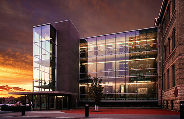 - Two greatly contrasting styles of architecture on original building and addition