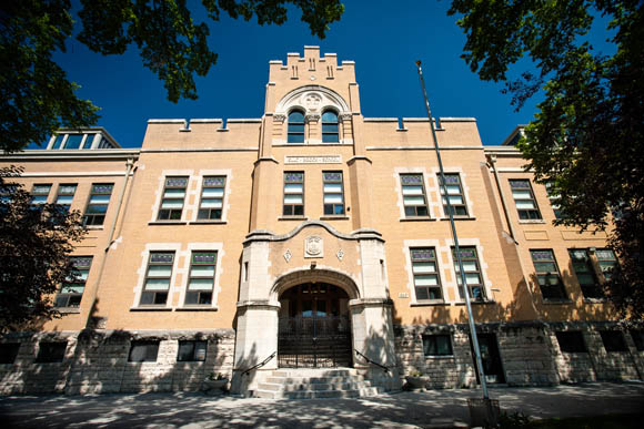 Isaac Brock School was Winnipeg’s largest elementary school in 1913. Its design is an excellent example of a two-storey, classically detailed school building. The school is one of Winnipeg’s best examples of the Collegiate Gothic style. Constructed with buff brick and stone trim, the school has a prominent main entry marked by a tower. The signs carved in stone for the traditional boys and girls entrances remain.